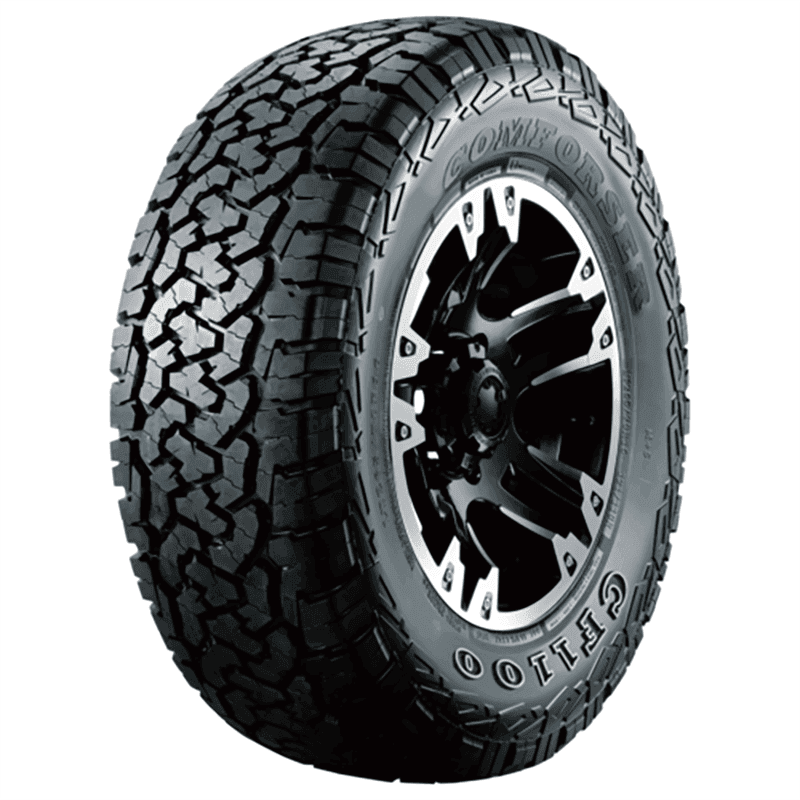 The Comforser CF1100 is an all-terrain tire for light trucks and SUVs and features widely spaced grooves and angled tread blocks that enhance traction on- and off-road. An optimized design with open shoulders promotes self-cleaning to further enhance traction and protect the casing from damage, and the CF110's tough rubber compound guards the tire against cuts, chips, and abrasions for a longer tread life. Additionally, the CF1100 features a wide footprint that puts more rubber on the surface to boost stability and fend off uneven wear.
